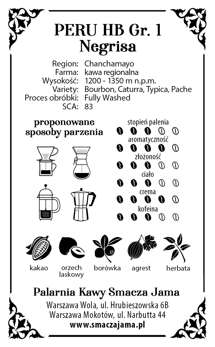 Peru to trzecie co do wielkości państwo w Ameryce Południowej – pierwsze dwa miejsca należą do Brazylii i Argentyny. Klimat Peru jest bardzo zróżnicowany, co w dużej mierze jest związane z ukształtowaniem terenu. Dominuje klimat zwrotnikowy, czyli większa wilgotność, a w wyższych partiach Andów klimat jest zdecydowanie bardziej suchy. Peruwiańska arabika uprawiana po wschodniej stronie górskiego pasma Andów w regionie Chanchamayo. Ziarna z plantacji Chanchamayo w Peru uprawiane są na wysokości 1200–1350 m n.p.m. Gospodarstwa należą do drobnych producentów posiadających mniej niż dwa hektary ziemi i produkujących około 1500 kg kawy w sezonie. Kawa Peru HB to stuprocentowa Arabica, którą chroni przed szkodnikami i niekorzystnymi warunkami atmosferycznymi wyjątkowa twardość skorupy ziarna. Najczęściej występującymi odmianami ziaren kawowca w tym rejonie są Caturra, Bourbon, Typica oraz Pachę.